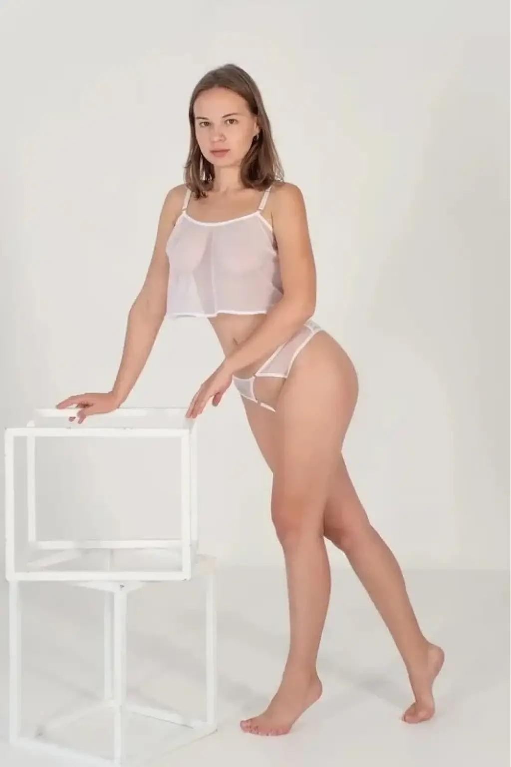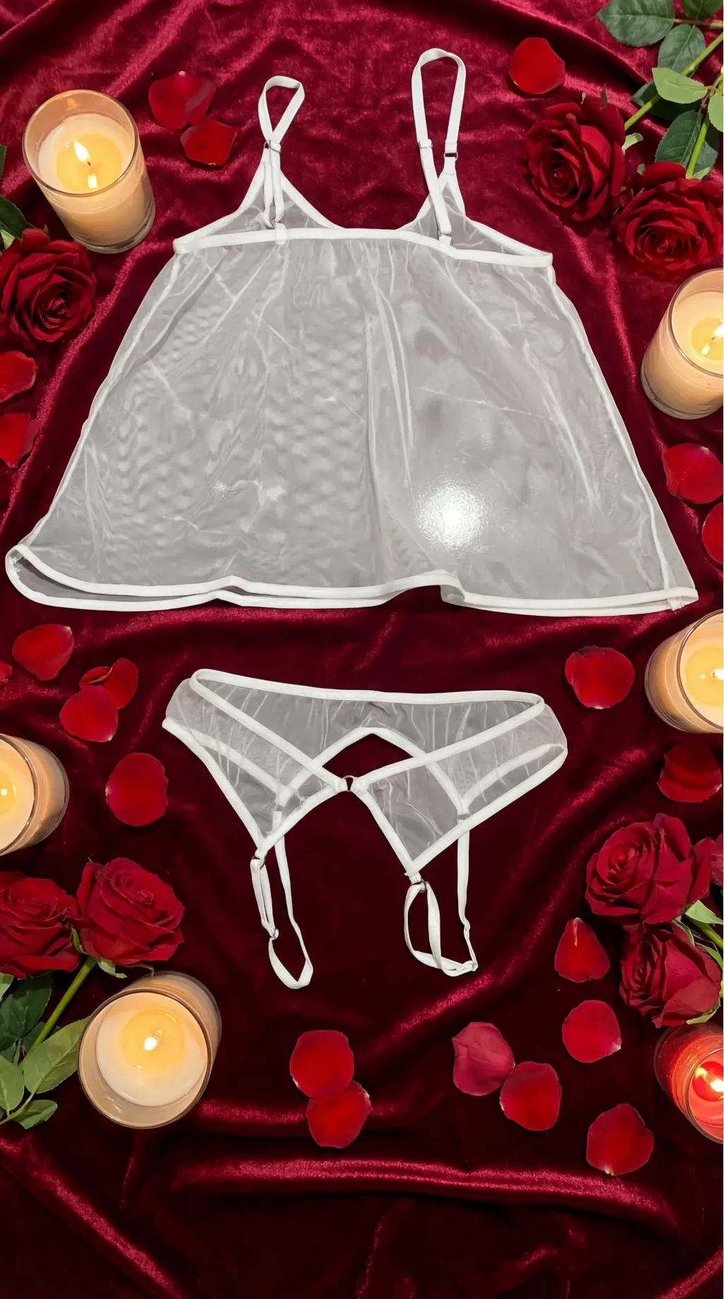 Bembeyaz Fransız tülünün ten üzerinde bıraktığı o büyülü dokunuşu hayal et… Blanche Transparente Fantasie Set, hafiflik ile cesareti aynı anda taşıyan kusursuz bir zarafet sunar. Dökümlü tül üst parça, her hareketle incecik salınarak saf bir masumiyetle birlikte tatlı bir baştan çıkarıcılık yaratır. Minimal çizgilerle tasarlanan alt parça ise bedenin kıvrımlarını zarifçe ortaya çıkarırken, gizli arzuları gülümseten modern bir şehvet sunar.