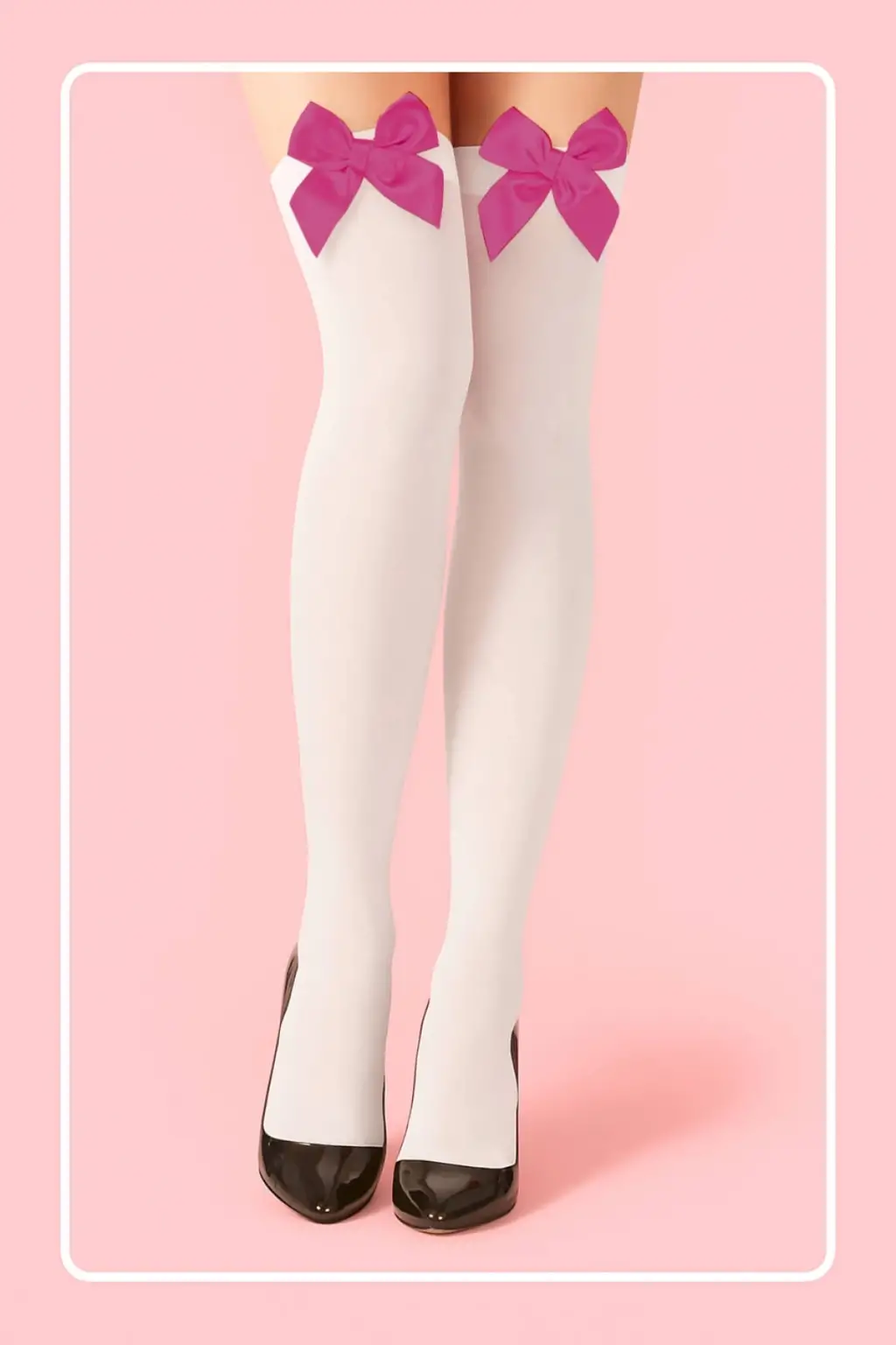 D Lingerie Fuşya Fiyonklu Beyaz Jartiyer Çorabı D Lingerie1379