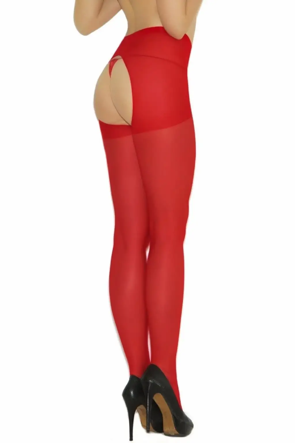 D Lingerie Kırmızı Kenarları Dantelli Özel Bölgesi Açık Külotlu Çorap DM1053