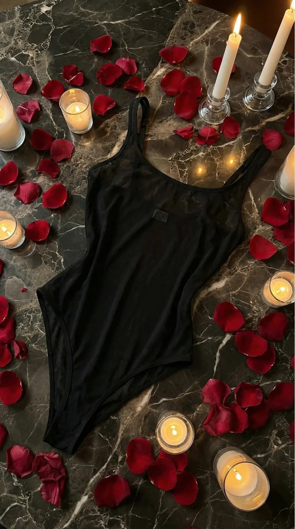 Transparan yapı, ince askılı tasarım, vücuda oturan kalıp, pürüzsüz doku, hafif ve esnek form, Noire seri siyah renk