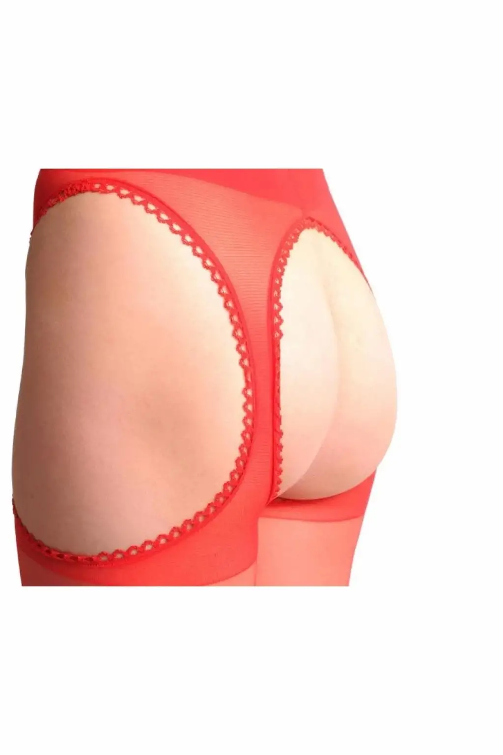 Yüksek bel tasarım, açık bölge kesim, ultra esnek file dokusu, dayanıklı mikrofiber örgü, dantel geçişli kenarlar, bacakları ince gösteren form, transparan görünüm, hafif parlak yüzey, gece için özel tasarım, rahat ve nefes alan yapı.